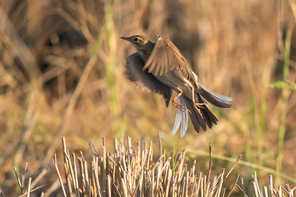 Since the discovery, I have been regularly visiting this site in the evening and continued to find more interesting species. However, in this post, I’d like to share my thoughts about the Richard’s Pipits (Anthus richardi) that were coming to roost here. It was the most abundant pipit that came to roost at this site. The number fluctuated between 20-50 individuals between late January to early April. The number then dropped to around 10 individuals in mid April. It’s quite surprising how numerous they could be in the evening, but I barely see any in the morning, even when I visited the site at daybreak. These birds seemed to leave the roost very early in the morning, even before sunrise, and only returned to the roost around 5 PM, just before sunset.
