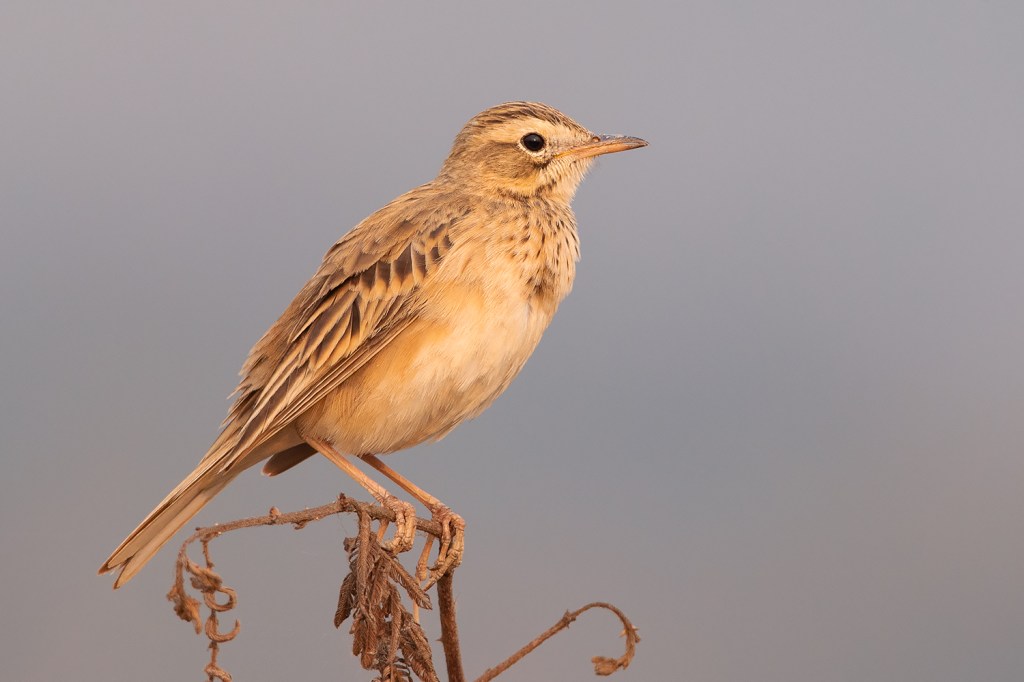 Before going to roost, many birds liked to perch on the dry mimosa trees to rest and preen as the sun set. While perching on trees, the hind claws can be seen clearly. This juvenile shows the typical hind claw length for Richard’s Pipit. (Date 26 January 2021)