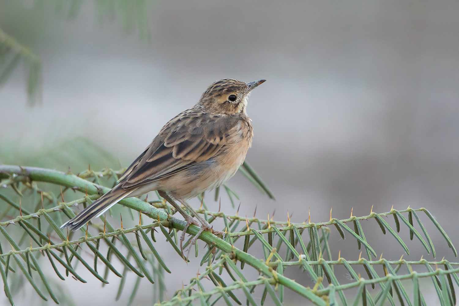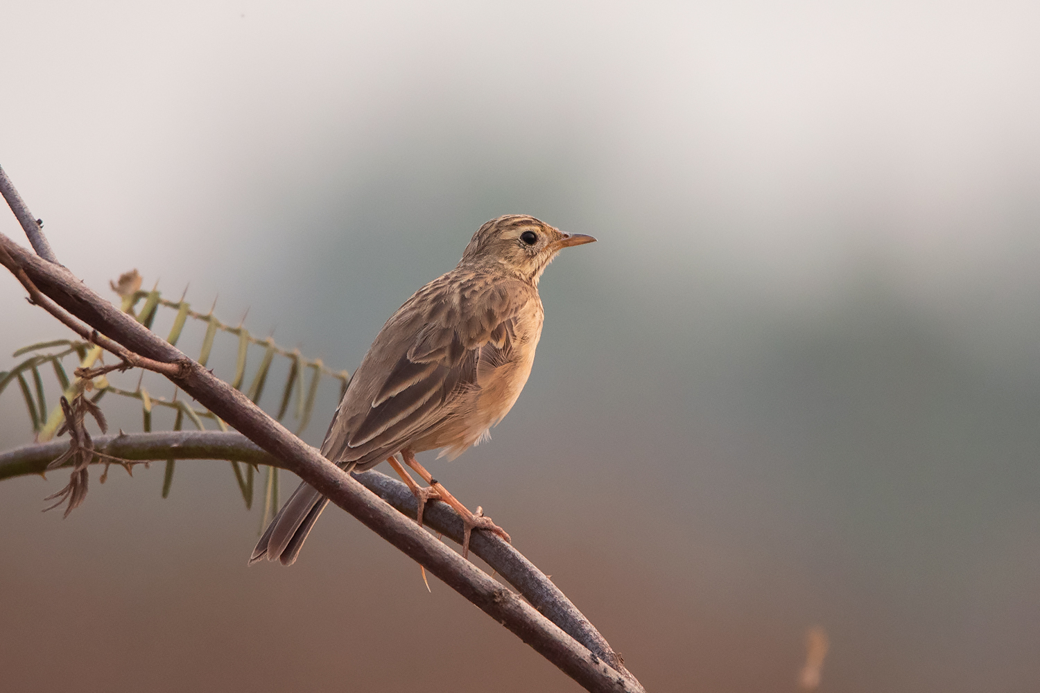 Before going to roost, many birds liked to perch on the dry mimosa trees to rest and preen as the sun set. While perching on trees, the hind claws can be seen clearly. This juvenile shows the typical hind claw length for Richard’s Pipit. (Date 26 January 2021)