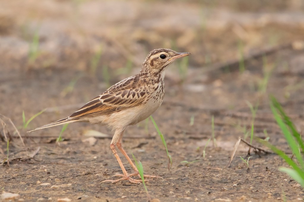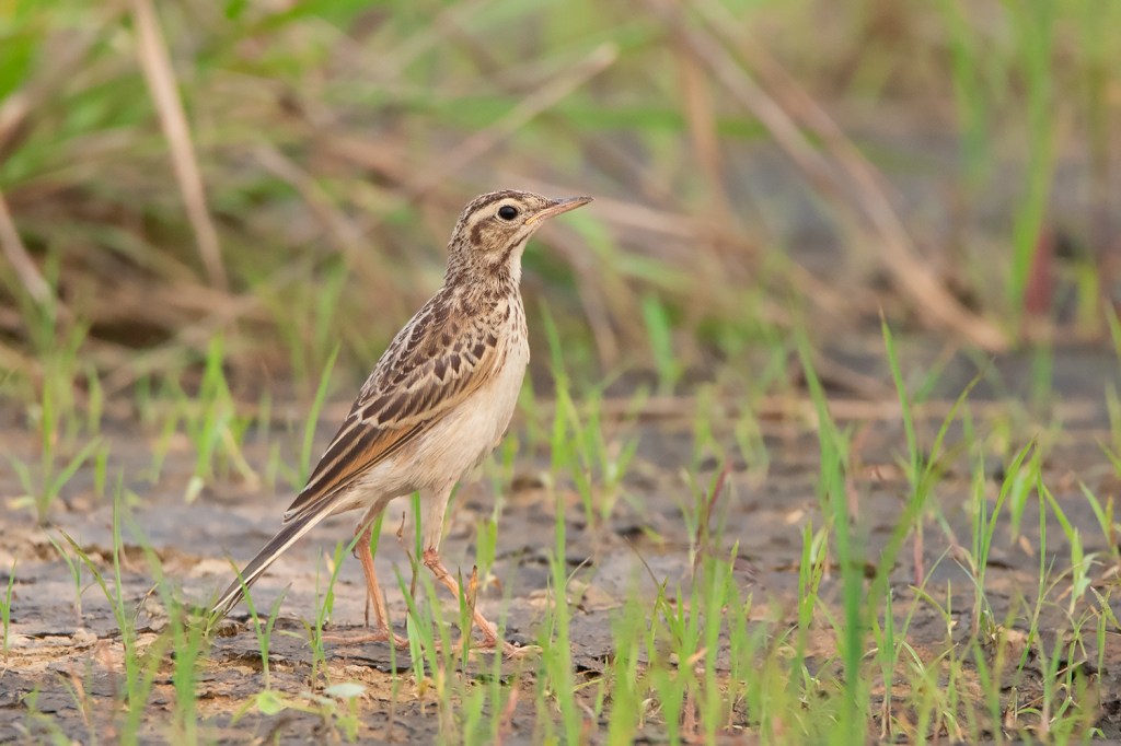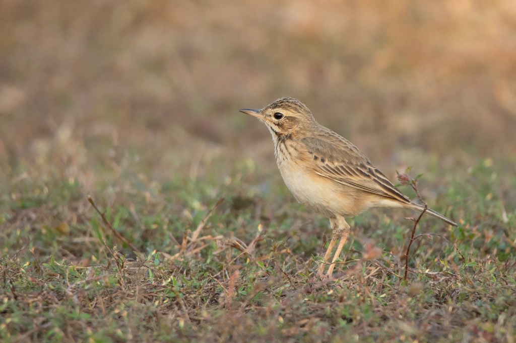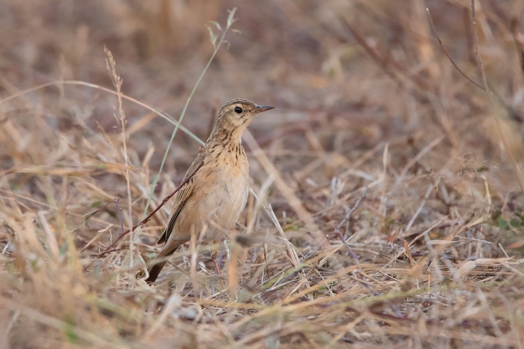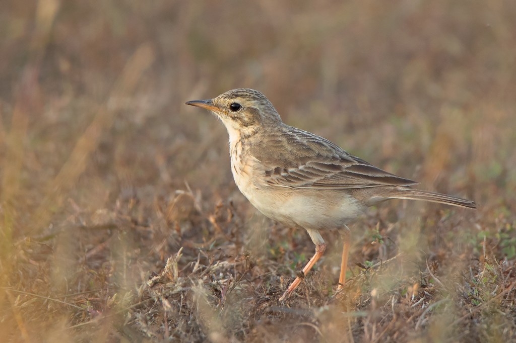 Let’s start with the classic look of the Paddyfield Pipit. When seen in the field, it often appears rather compact with short tail and rather large head. It also usually appears noticeably smaller than the Richard’s Pipit, although the race sinensis of Richard’s Pipit might not differ in size. The hind claws of Paddyfield Pipit are also shorter than in Richard’s Pipit, but not much different from Blyth’s Pipit. Again, the most diagnostic feature that I find useful for separating these two similar species is the bill. Paddyfield Pipit has a long and narrow bill with fine bill tip, and the culmen is not noticeably curved as in Richard’s Pipit. Another feature that is often useful is the lore colour. In Paddyfield Pipit, the lore usually appears darker than in Richard’s and Blyth’s Pipit. However, some Paddyfield Pipits can also have rather pale lores, while both Richard’s and Blyth’s Pipit might appear to have dark lores too, especially when seen in profile or while moulting. It is important to pay attention to several features and not relying on a single characteristic when trying to identify them.