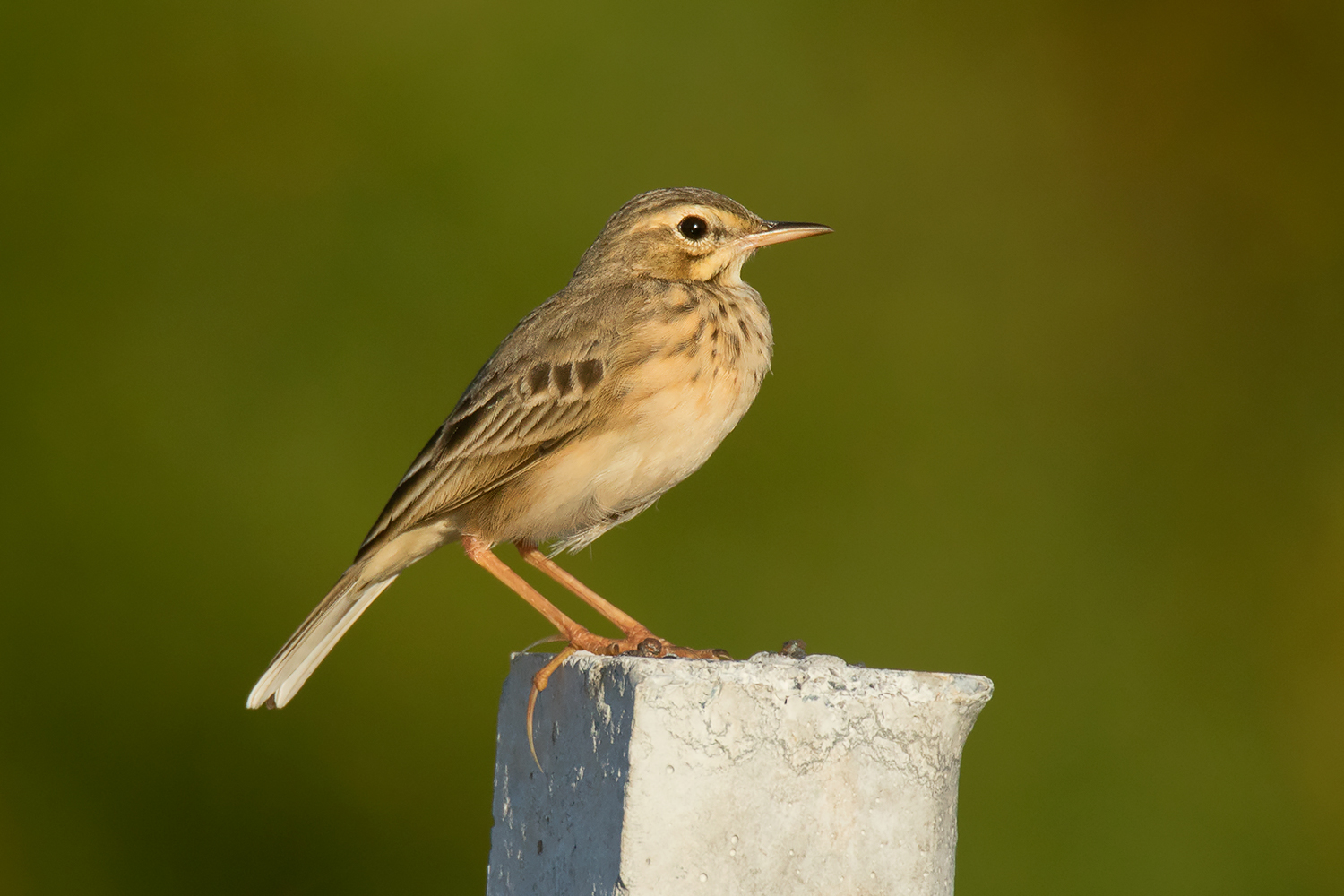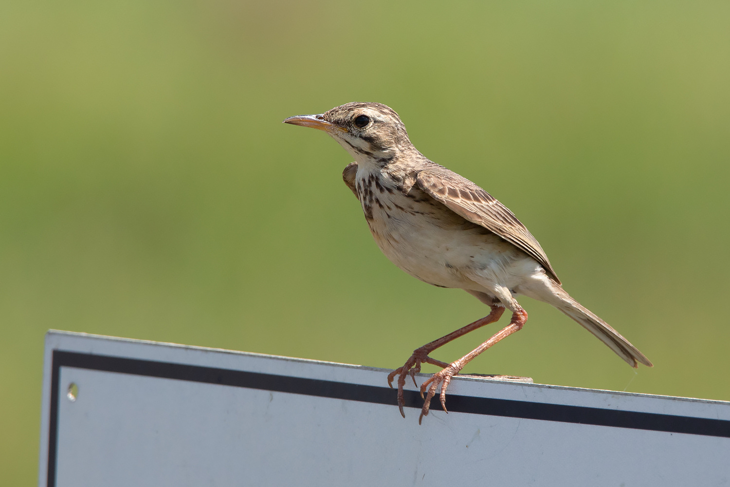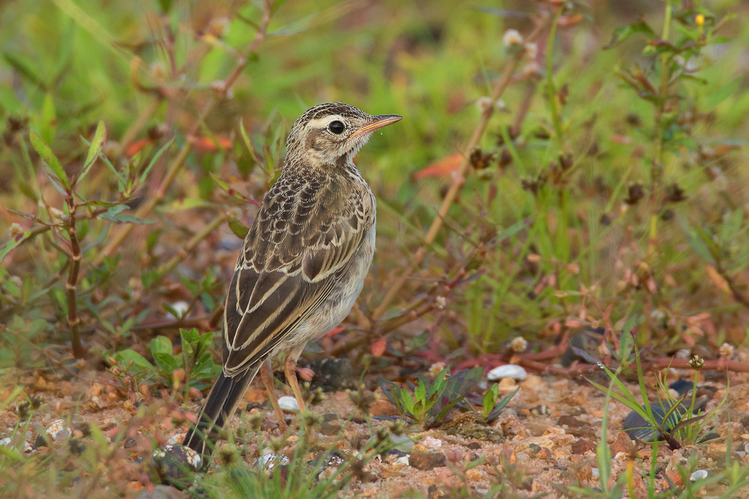 Let’s start with the classic look of the Paddyfield Pipit. When seen in the field, it often appears rather compact with short tail and rather large head. It also usually appears noticeably smaller than the Richard’s Pipit, although the race sinensis of Richard’s Pipit might not differ in size. The hind claws of Paddyfield Pipit are also shorter than in Richard’s Pipit, but not much different from Blyth’s Pipit. Again, the most diagnostic feature that I find useful for separating these two similar species is the bill. Paddyfield Pipit has a long and narrow bill with fine bill tip, and the culmen is not noticeably curved as in Richard’s Pipit. Another feature that is often useful is the lore colour. In Paddyfield Pipit, the lore usually appears darker than in Richard’s and Blyth’s Pipit. However, some Paddyfield Pipits can also have rather pale lores, while both Richard’s and Blyth’s Pipit might appear to have dark lores too, especially when seen in profile or while moulting. It is important to pay attention to several features and not relying on a single characteristic when trying to identify them.
