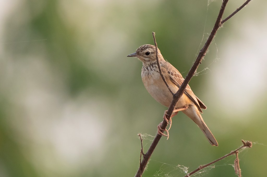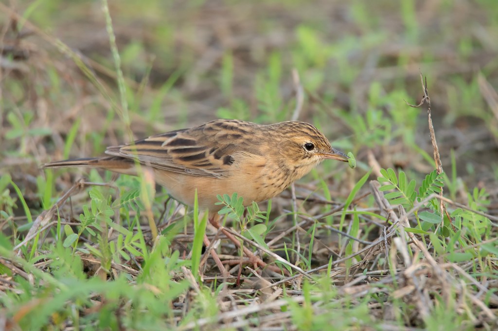 Apart from the different plumage and structure, I also find the movements of Blyth’s Pipit while feeding to be slightly different from both Richard’s and Paddyfield Pipit; being more horizontal, squatting and stealthy. It usually forages in short grass, looking for food items hidden under the grass. I’ve observed it while hunting on various kinds of worms, dragonflies and spiders.