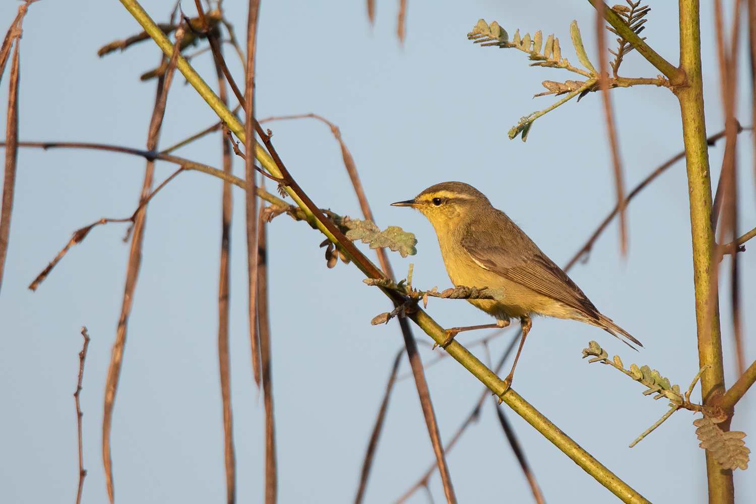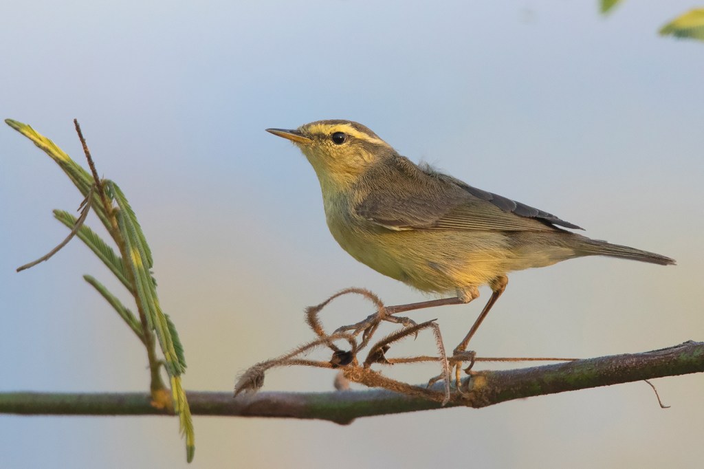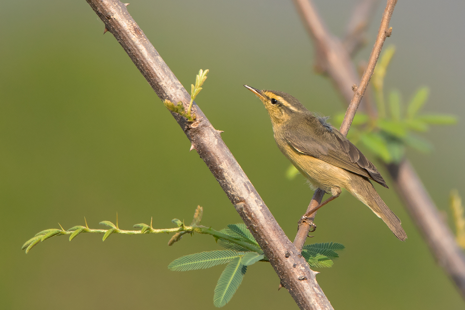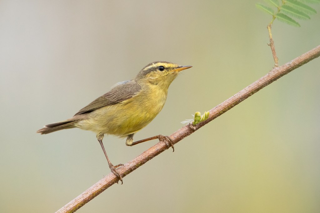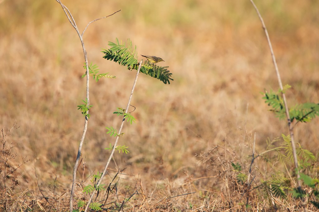 In the evening of 1 January 2021, I decided to visit Mae Faek paddies with the aim to get some nice photos of common farmland birds. It was a very pleasant evening with nice cool winter breeze and really nice lighting. The condition was perfect for photography. While I was enjoying some nice views of the local Plain-backed Sparrows, I noticed a small warbler foraging in a mimosa tree in the background. I snapped a few shots of the warbler and checked the photos to see what it was. To my surprise, it was a Tickell’s/Alpine Leaf Warbler, a very rare bird in Thailand! I ended up spending that evening following it around until sunset. It certainly became one of the most memorable New Year’s days I’ve ever had.