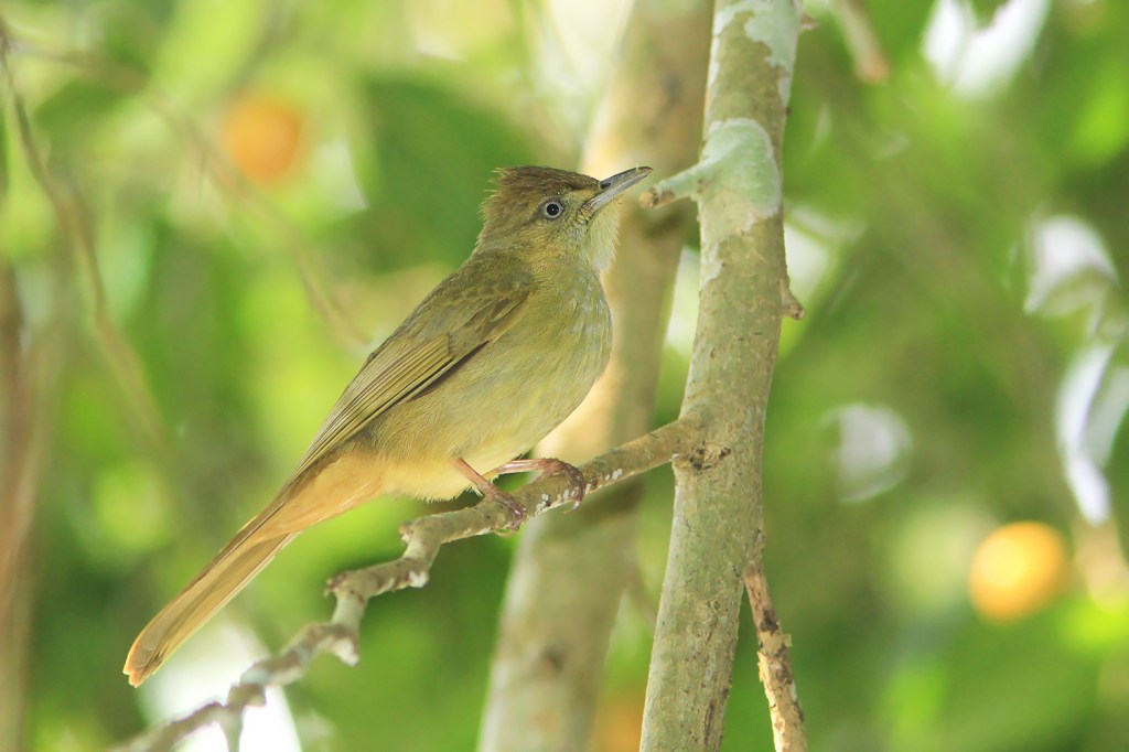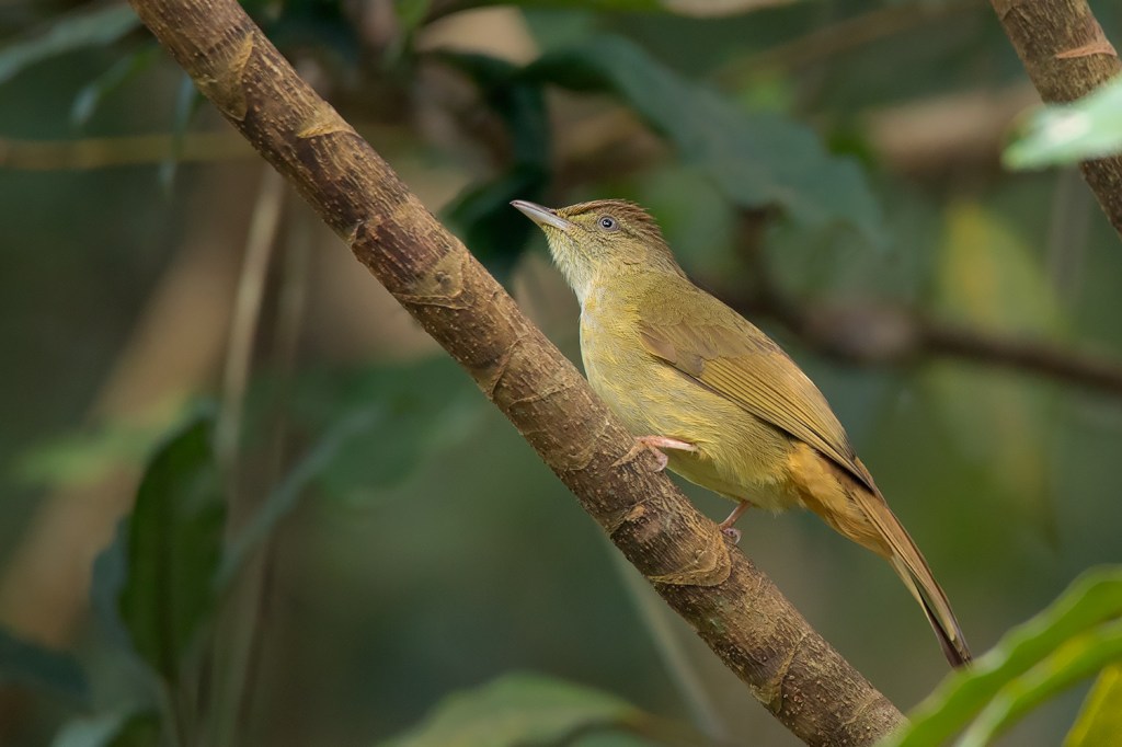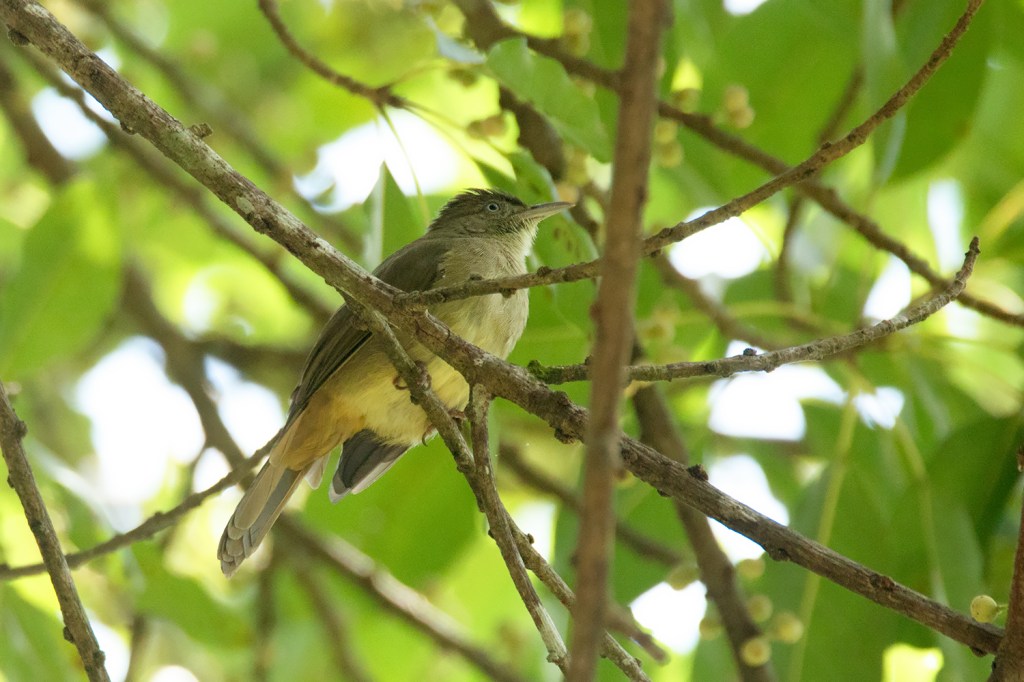 The next species is the Baker’s Bulbul (I. cinnamomeoventris). It is a rather new split and a taxonomic headache. The Thai Bird Records Committee accepts it as a species according to a study on morphology, calls and genetics of all Iole bulbuls. Other checklists place it within different species. Most checklists treated it as a subspecies of Grey-eyed Bulbul, but the IOC and Clemenets recently placed it within Olive Bulbul. Despite the taxonomic complication, it is a rather distinctive taxon which deserves your attention. In Thailand, it can be found along the south-western border all the way to the western part of the Thai-Malay Peninsula. If you’re birding at Kaeng Krachan National Park, it is the only Iole bulbul in this area. Plumage-wise, it looks very similar to Grey-eyed Bulbul but usually appears slightly less yellowish overall, but there is no overlap between the distribution of Baker’s and Grey-eyed Bulbul to our current knowledge. It is more likely to be confused with Buff-vented Bulbul which it overlaps in the south. The call of Baker’s Bulbul is nearly identical to Olive Bulbul https://www.xeno-canto.org/336923.