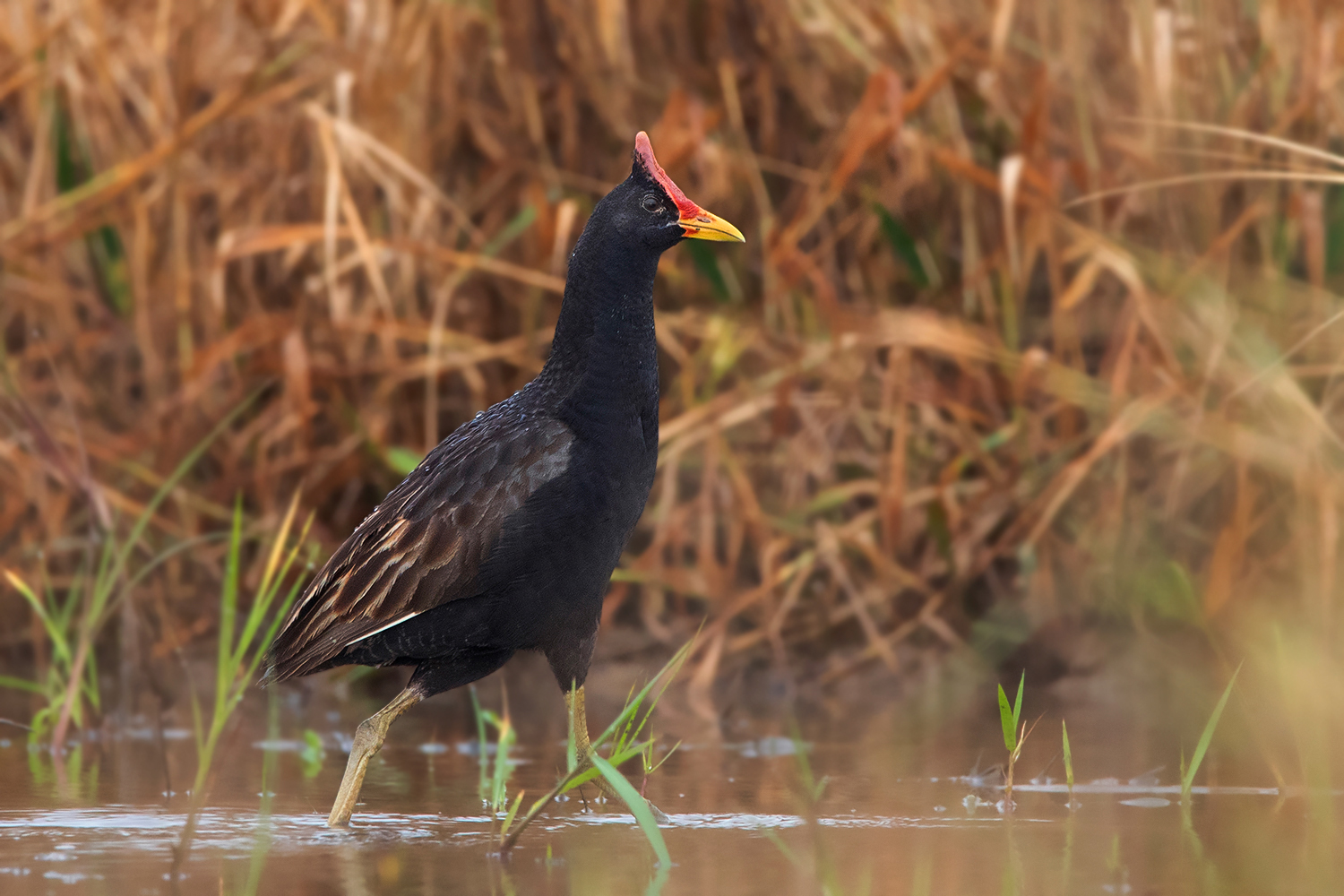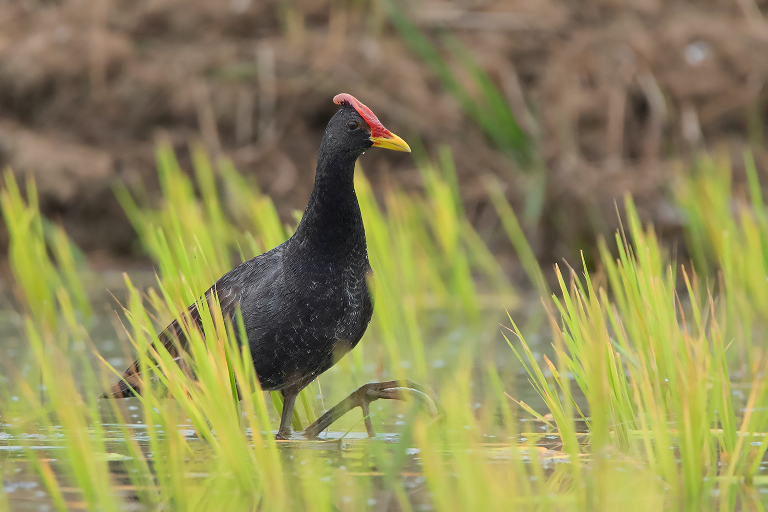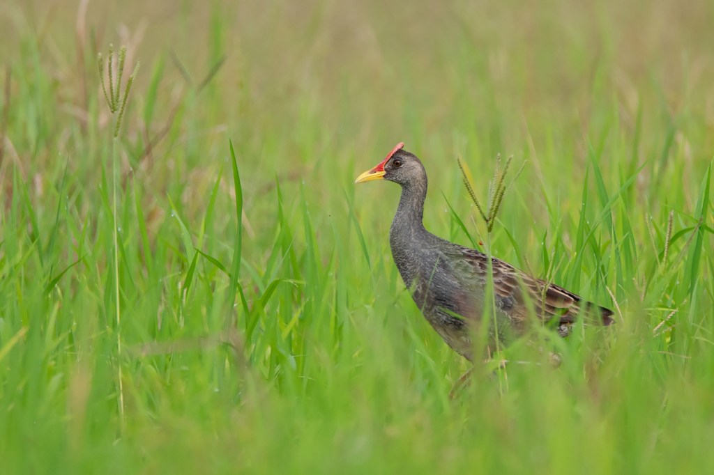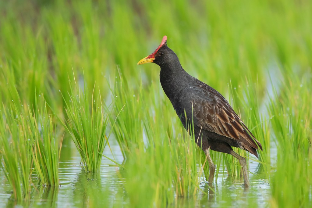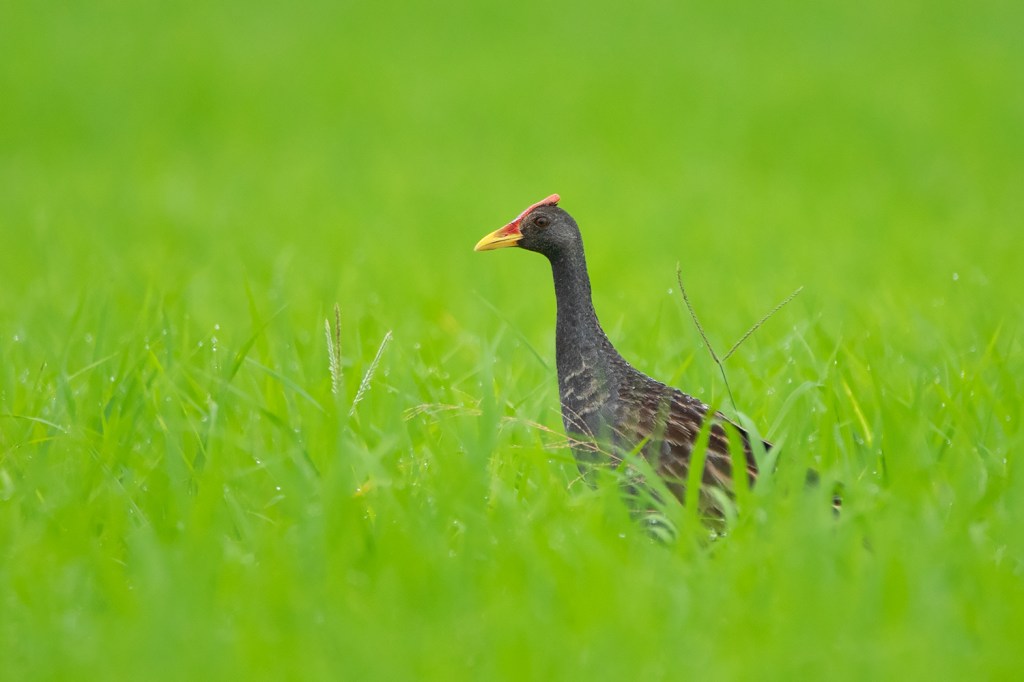 Once the field is ploughed and flooded, farmers would plant rice seedlings. At first, the field would still be very open but the cover will constantly become denser as the seedlings grow. Some farmers don’t go through the process of planting seedlings but rather sow rice grains directly into the field instead. Either way, once the rice becomes tall enough, the Watercocks would then return and begin to reclaim their territories and start nesting again.