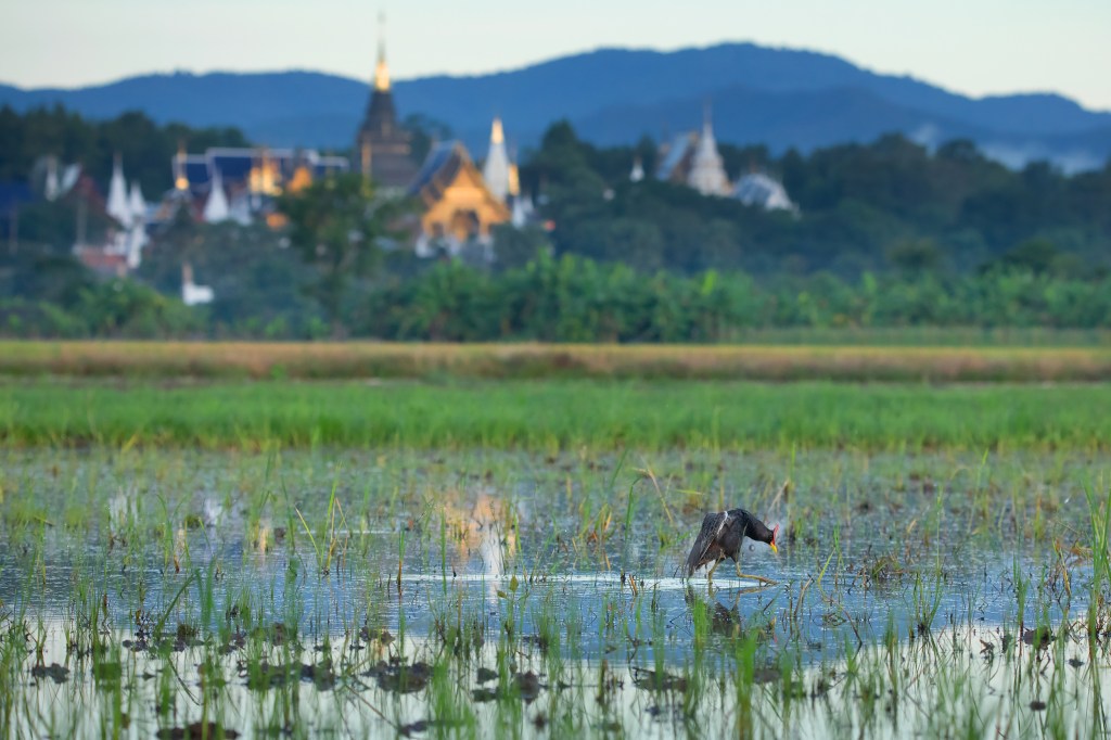 Throughout the whole July 2021, I visited the vast area of rice fields in Inthakin Subdistrict (Mae Taeng District, Chiang Mai) almost daily. It is a new area which I had never explored before even though it’s only about 4 km away from my house. The area was recommended to me by a local birder who posted many nice photos of Watercocks and other waterbirds from that area on his Facebook. It is a huge area of approximately 13 km2 (1300 ha) of mainly rice fields mixing with some other types of plantation. The area spans over at least 4 villages including Ban Den, Ban Hang Dong, Ban Pa Ji and Ban Muang Kham. It’s also a quite convenient area to explore as there are roads and small tracks leading to almost every corner. I actually regret that I had never explored this site before. Not only that it is so close to my house, but it’s also on the way to Ban Cho Lae where I used to bird regularly when I first started birding. I had just completely overlooked this huge area with so many potentials for birding through all this time.