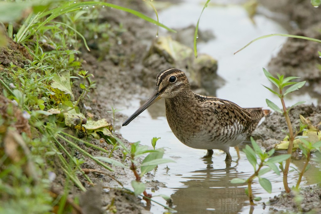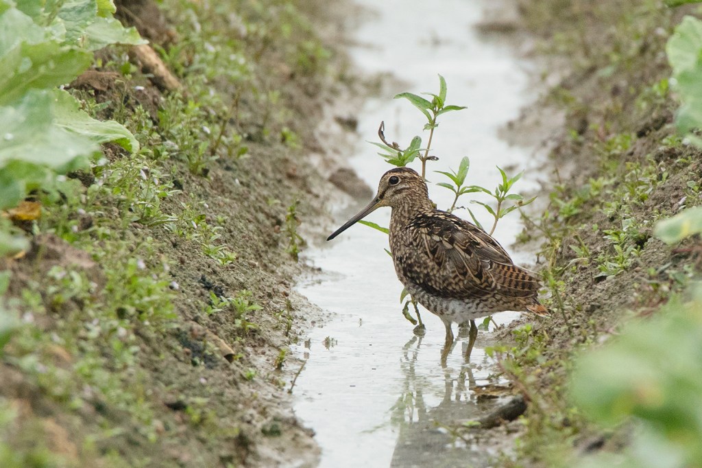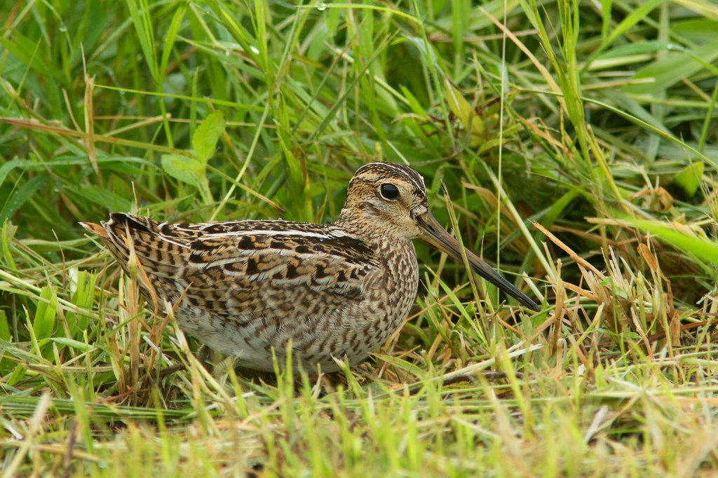 It is probably easiest to identify the Common Snipe while in flight. The underwings of Common Snipe are much different from both Pin-tailed and Swinhoe’s Snipe by having more extensive amount of white on the barring of underwing coverts. The upperwings are also different by having a bold white trailing edge along the secondaries which can be seen clearly particularly when landing. Both Pin-tailed and Swinhoe’s Snipe lack such bold white trailing edge. However, the amount of white on the underwing coverts can be quite variable ranging from completely white to very little white with extensive dark barring just like in Pin-tailed and Swinhoe’s Snipe, but the white trailing edge along the secondaries seems to be consistent among all birds that I’ve photographed.