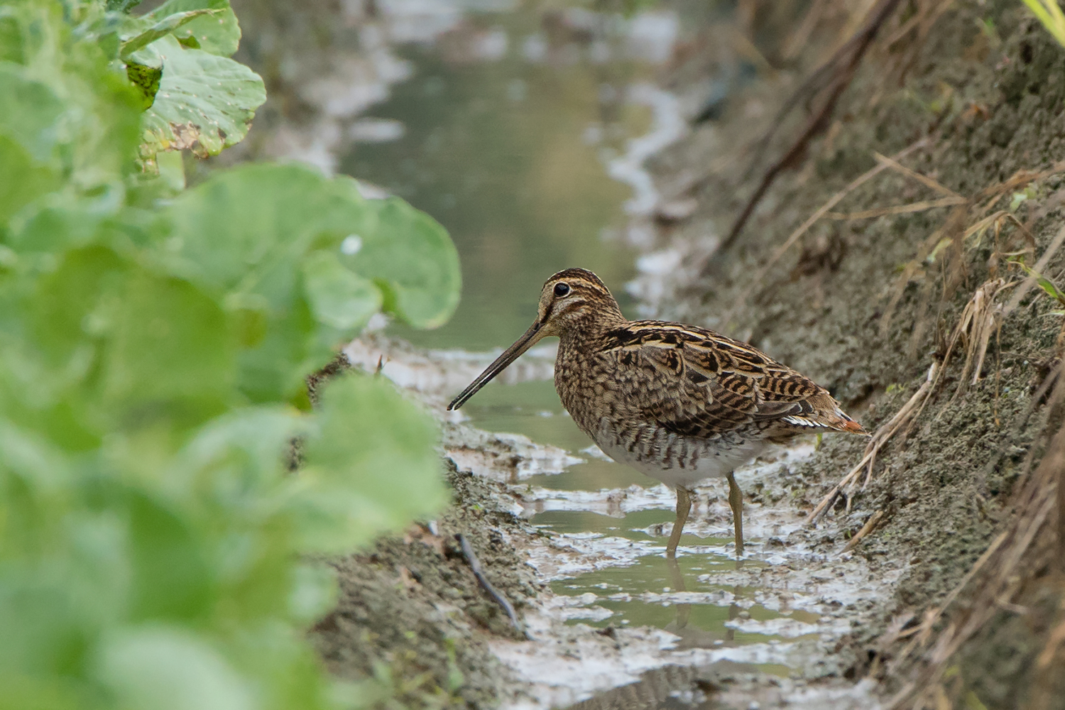 In Thailand, the Pin-tailed Snipe is usually the first one to arrive in autumn. It can be found in various habitat types including rice fields, marshes and even streams or bogs in forested areas but rarely found in coastal habitats unlike the Common Snipe.