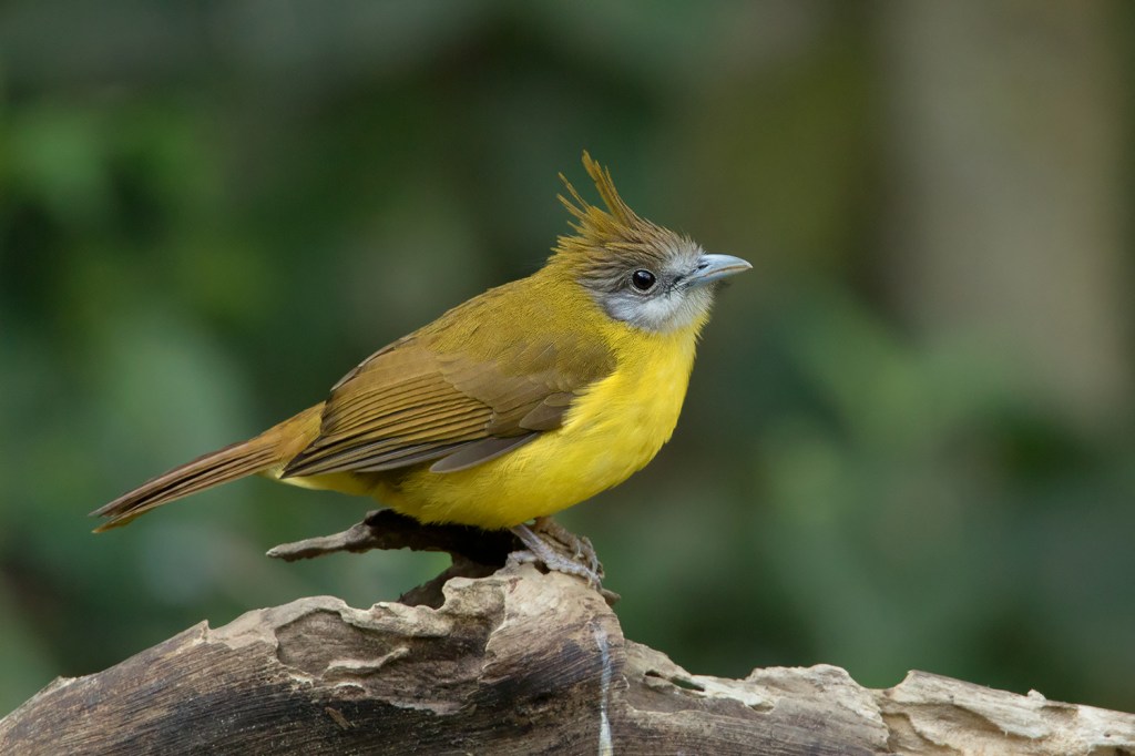 The genus Alophoixus is one of many genera within the family Pycnonotidae. It is consisted of a number of large bulbuls, mostly with crest. In Thailand, 5 species can be found; 1) White-throated Bulbul (A. flaveolus), 2) Puff-throated Bulbul (A. pallidus), 3) Ochraceous Bulbul (A. ochraceus), 4) Grey-cheeked Bulbul (A. tephrogenys), and 5) Yellow-bellied Bulbul (A. phaeocephalus). None of these species are considered “rare” and can be found quite easily in the right habitat and location. However, I noticed that we actually know so little about them, even the common ones like Puff-throated and Ochraceous Bulbul. In this post, I will only focus on the White-throated Bulbul, a species which I have observed at several places and noticed something interesting about their different appearances.