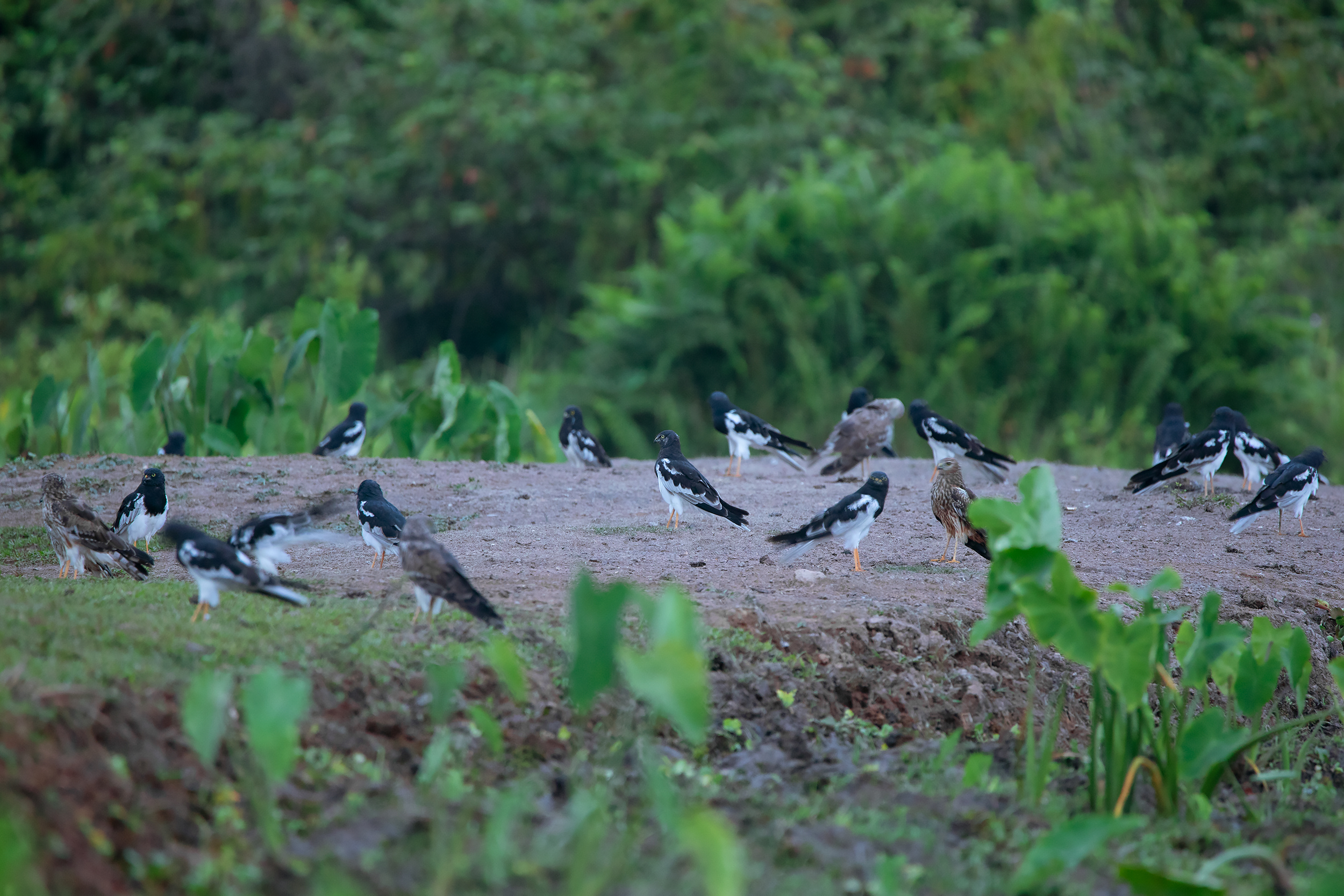 It was estimated that more than 400 harriers roosted at Wiang Nong Lom in the past, but the current number appears to be much fewer than that. The most abundant species is the Pied Harrier (Circus melanoleucos) which is estimated to be approximately 200 individuals each winter. Unlike other harriers, the Pied Harriers often perch together in big flocks on open ground before flying into the actual roost once it gets completely dark. The most frequented pre-roosting congregation site is near the watch tower where a permanent hide has been set up for many years.