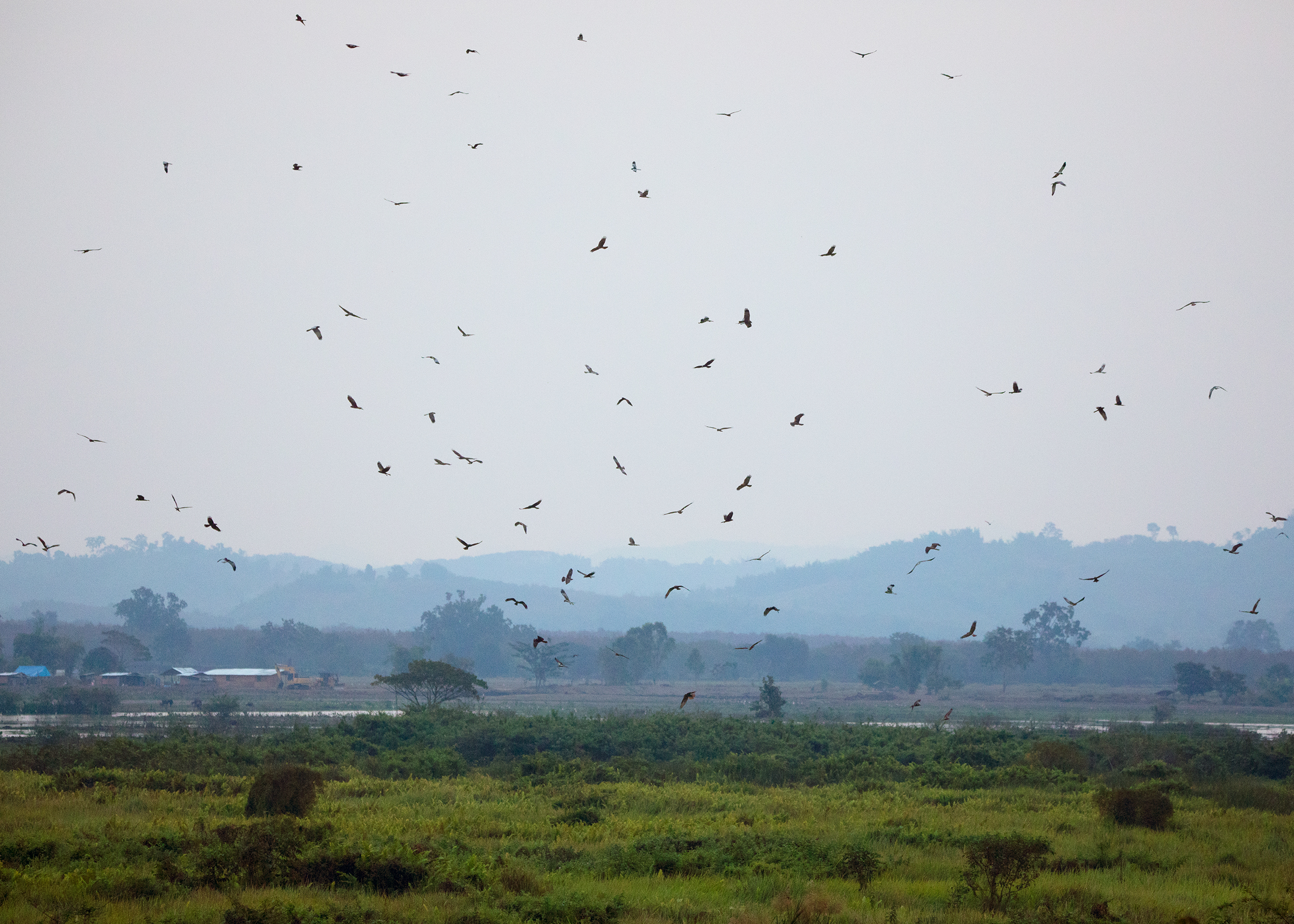 The most unique characteristic of Wiang Nong Lom is the dense grassland that is actually floating above the water. This makes it a safe place for harriers to roost, and also a safe breeding ground for the little known Eastern Grass Owl. It’s extremely difficult to go into the grassland, and quite risky as you can easily sink into the water below. However, recent development on the eastern side of the lake has been shrinking the size of the floating vegetation. Burning and draining of water for agriculture are also the main threats to this valuable but overlooked habitat.
