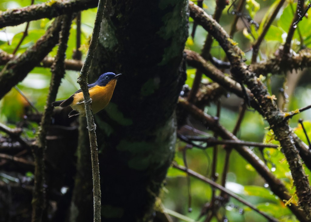 We continued our search along the road and finally, while checking another busy flock of tiny birds, one of my friends yelled “Pygmy Flycatcher! A male Pygmy Flycatcher!”. It was quite a hectic moment and no one else got to see the bird before it disappeared into the mist along with tons of flowerpeckers. We didn’t give up and spent a long while trying to relocate the bird. Finally, we did find that particular male Pygmy Flycatcher again! This time, the bird was surprisingly cooperative and we could watch it for over 10 minutes while it was feeding and singing its extremely soft and ethereal song.